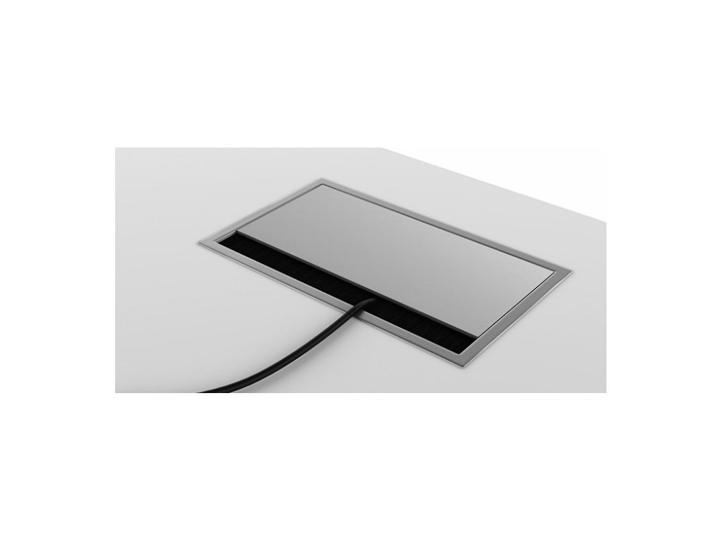 - Mechanicky výklopný zásuvkový panel montovaný do desky stolu