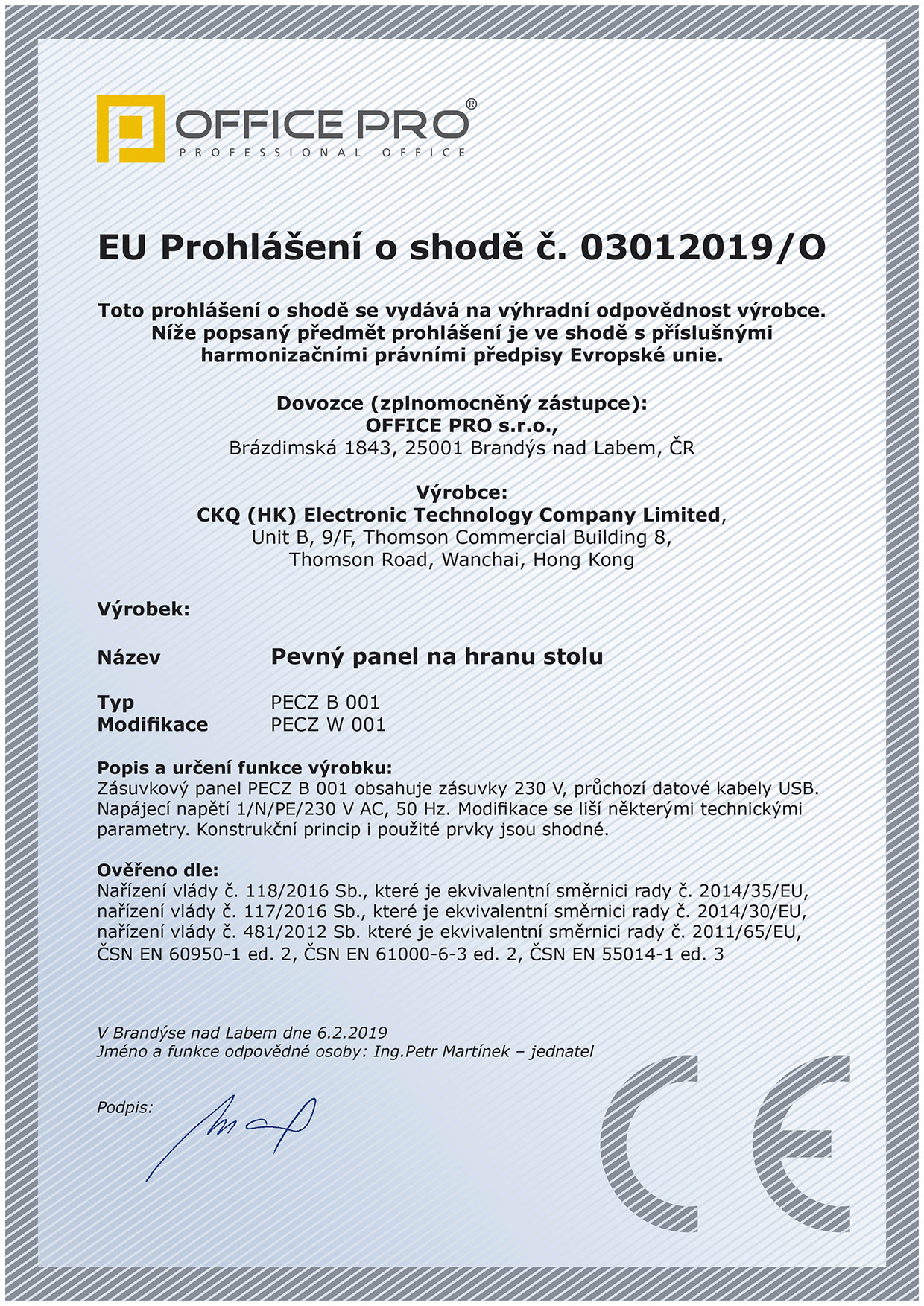 - Dodání v černé (PECZ B 001) nebo bílé (PECZ W 001) barvě